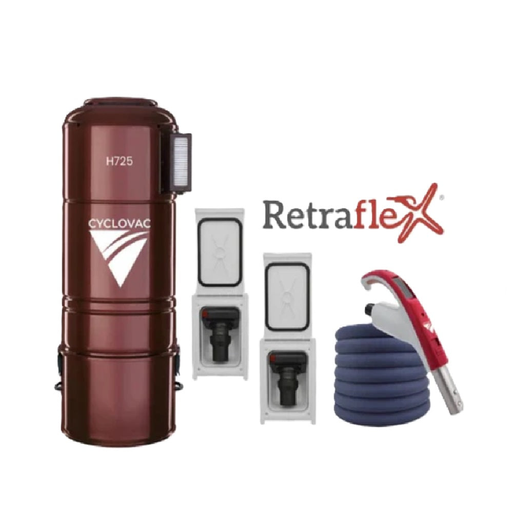 Combo CycloVac 725 - Hybride avec 2 tuyaux rétractables Retraflex de 30' incluant les accessoires et le kit d'installation