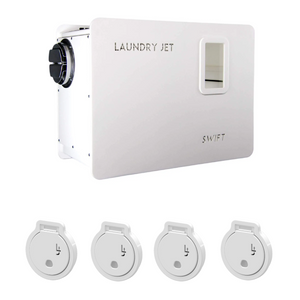 Dispose d'un cycle automatisé qui permet à l'utilisateur d'insérer des vêtements, des serviettes ou de la literie en laissant le Swift être transporté, puis de le vider automatiquement dans la buanderie, ce qui permet au système d'être immédiatement réutilisé. Le Laundry Jet Swift gère jusqu'à 4 emplacements de ports différents et peut être installé avec une option d'unité de retour qui permet à l'utilisateur de renvoyer des vêtements nettoyés et séchés dans une chambre ou un emplacement choisi dans la maison. Le Swift a une finition brillante polie et réfléchissante et est un appareil ergonomique haut de gamme qui ajoute de la technologie, de l'automatisation et de la valeur à n'importe quelle maison.