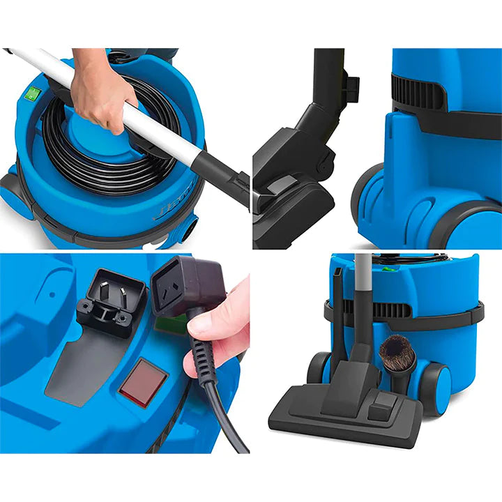 James est le membre économe de la famille, offrant un nettoyage professionnel à un excellent rapport qualité-prix. Le câble branché signifie que le remplacement du cordon d'alimentation ne pourrait pas être plus facile. Le stockage du câble est également pris en charge grâce au stockage de câble intégré. Les spécifications professionnelles comprennent un cordon d'alimentation de 10 m et une capacité de tambour de 8 L , vous permettant de nettoyer plus longtemps. Une fois terminé, James se range soigneusement grâce à son tube intégré et à son rangement pour outil de sol.