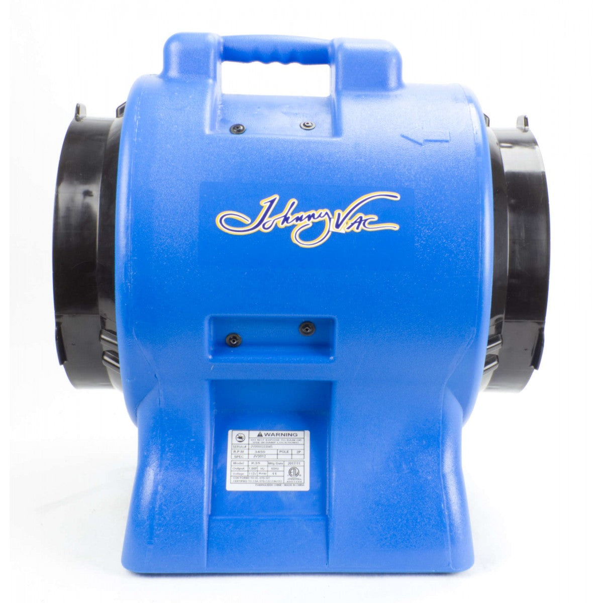Voici le puissant ventilateur JV3012 de Johnny Vac. Conçu pour sécher ou ventiler l'air humide, le JV3012 est doté d'une seule vitesse pour une utilisation facile. Il possède un diamètre de 12" (30,5 cm) et une puissance de ventilation de 1 CV. L'avant du ventilateur est incliné pour permettre un séchage rapide de tous types de surfaces. Facile à déplacer grâce à sa poignée intégrée, le JV3012 est également doté d'un moteur scellé, le rendant utilisable dans toutes les conditions.