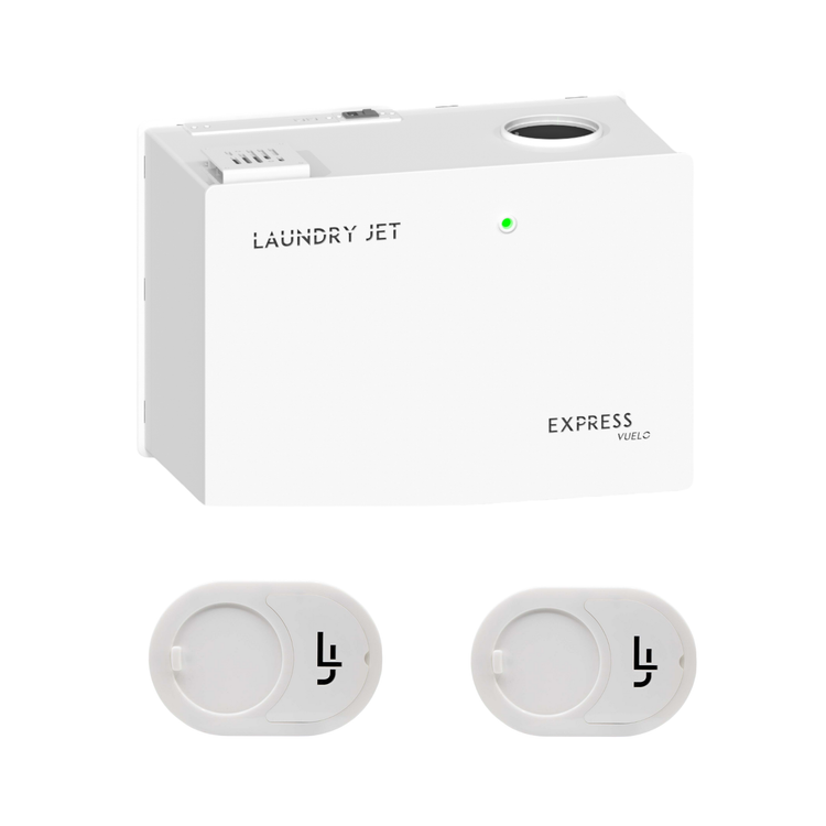 The Laundry Jet Express Vuelo is our lowest cost entry level wall or cabinet mounted model with up to 2 available ports and has many upgrades from its predecessor including power, speed, accessibility, capacity, internal cabling, vent position and using low voltage cable instead of Cat5/6. The Express Vuelo can be only be used with the manual Lift Port LV (low voltage) or manual open Slide Port LV and has an automated cycle which allows the user to insert clothes, towels, or bedding leaving the unit to transport and then auto empty in the laundry room, which allows the system to be immediately used again. The Express Vuelo handles up to 2 different port locations, one of which can be piped to a Return Unit option allowing the user to send clean and dried clothing back to a chosen bedroom or location in the home. The Express Vuelo has a polished and reflective white gloss lux finish and is a high-end ergonomic appliance which adds technology, automation, and value to any home.
