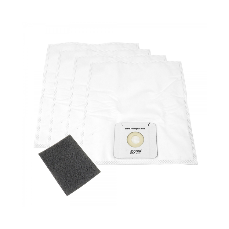 Microfilter Hepa Canister Vacuum Bags - Johnny Vac XV-10 and XV-10 Plus - Pack of 4 Bags + 1 Filter