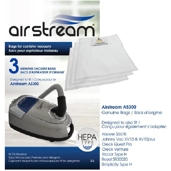 Maintain optimal performance and superior filtration with these H.E.P.A bags designed for the AS100 AirStream vacuum. These high-quality bags effectively capture fine dust and allergens, ensuring a cleaner and healthier home environment.