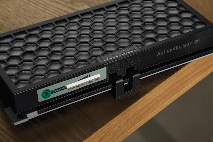 - Genuine original Miele exhaust filter. Timestrip®. Some original Miele exhaust filters are equipped with a time-strip® – a change indicator.
